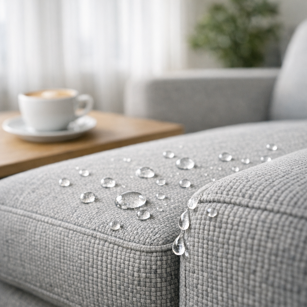 • Vlek- en vuilwerend: vloeistoffen parelen, vlekken hechten minder snel.